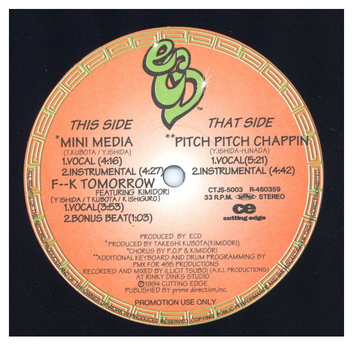 日本のラップ創成期から活動を続け、さんピンCAMPを主催等シーンへ多大な影響を与えながらも’18に惜しくも亡くなったECDが’95にリリースしたアルバム”Homesick”からの先行シングル。クボタタケシ製作でキミドリもコーラスで参加したヴァイナルジャンキーへ捧げた”Mini Media”、Illicit Tsuboi製作でこちらは客演でキミドリが参加した”Fuck Tomorrow”、ECDセルフプロデュースによる哀チューンの”Picth Pitch Chappin”のインスト含む全3曲6トラックを収録。