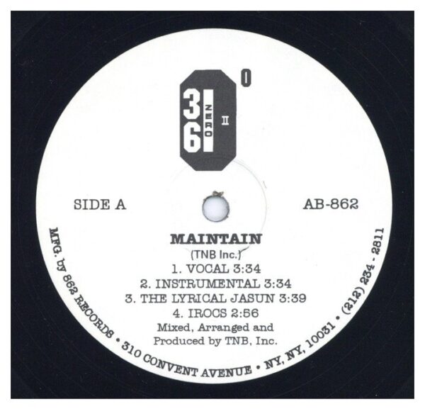 The Troubleneck Brothersの別名義ユニットである36ZEROが’94にリリースしたカセットのみのアルバム”Entadacipha”からのシングルカット。極上ピアノループに乗る”Maintain”、Big Daddy Kaneの声ネタを使った”The Lyrical Jasun”、Melvin Bliss”Synthetic Substitution”の定番ドラムを使った”Irocs”を収録。近年アルバム”Entadacipha”が再発されこのシングルも評価が著しい名盤です。