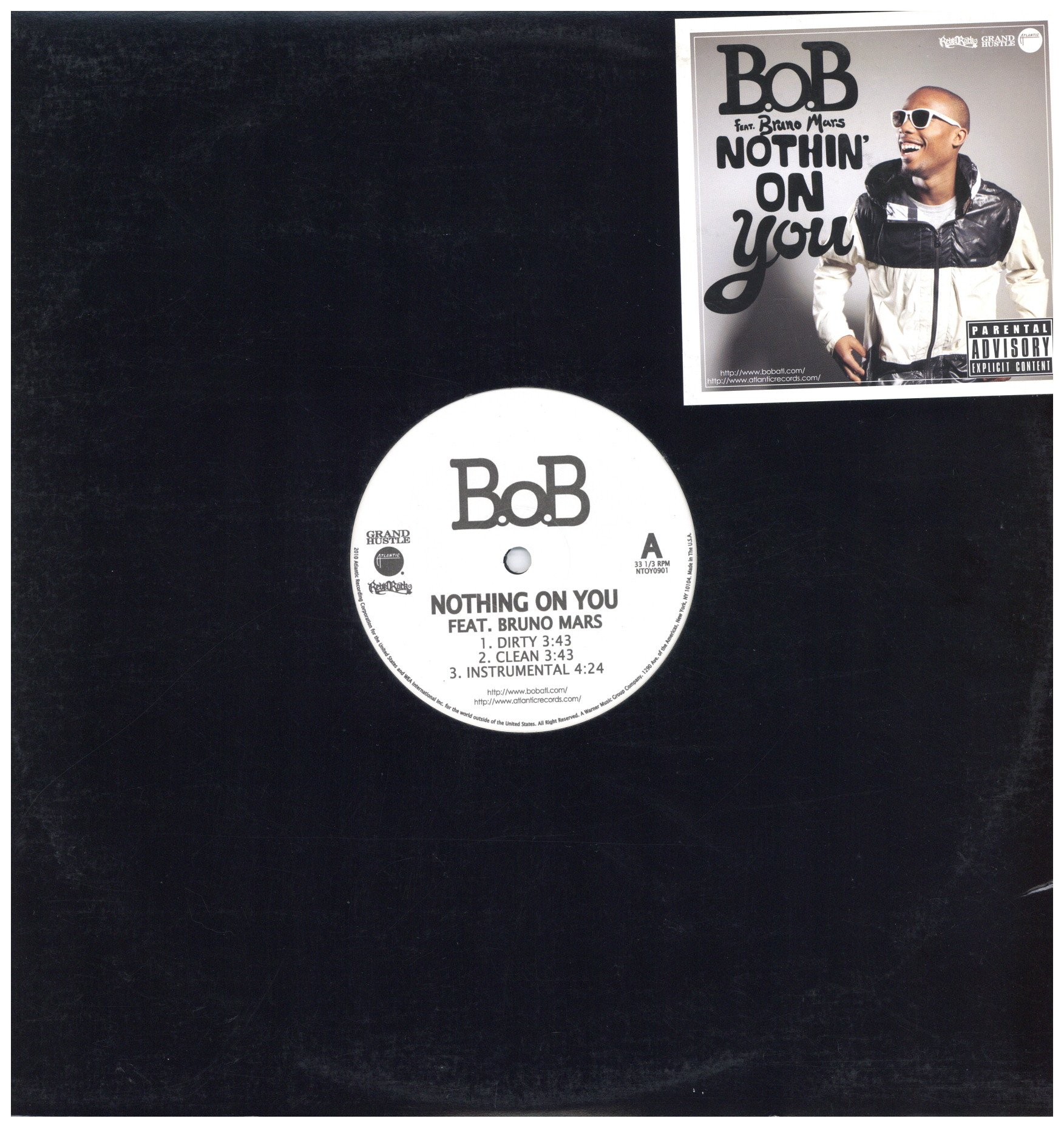 ジャケステッカー・リングウェア有。スリ傷有るがプレイOK。Bruno Mars出世作。B.O.B. aka Bobby Rayが’10にリリースされたアルバム”The Adventures Of Bobby Ray”からのシングルカット。Brandy”Long Distance”をRodney Jerkinsと共に製作し注目を集めたBruno Marsを迎え高揚感溢れる美メロ・エレピを華やかに展開させた爽快ミッド・ダンサー”Nothing On You”、そしてKanye West製作でそのKanye West”Crazy”を使った”Fuck The Money”、A Tribe Called Quest”Bonita Applebum”を使ったReebokのレトロ Fuck The Mmoney・スニーカー・キャンペーン曲”Put Me On (Reebok Classic Remix)”と正規盤には収録出来ない貴重な音源を収録。