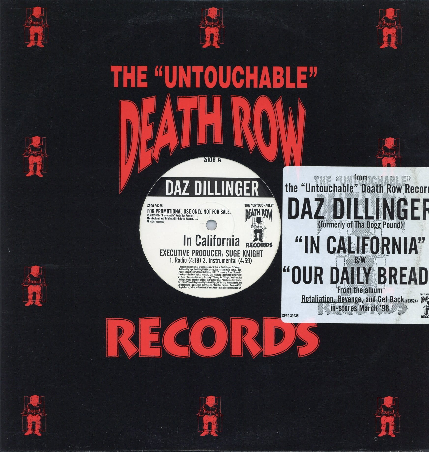 ジャケステッカー有。スリ傷有るがプレイOK。US Org。2Pac”California Love”やRoscoe”I Love Cali”と並ぶウェッサイ系Mix CD定番アイテム。KuruptとのTha Dogg Poundや、数々の名作を製作したDazが’98にリリースしたソロ名義の1stアルバム”Retaliation, Revenge And Get Back”からのシングルカット。製作はSoopaflyに任せて、ブリブリした重低音のベースに乗ってフロアをぶちかますDazにVal Youn嬢が「イン、カリィフォ~ニャ~♪」と激アゲする人気チューン”In California”、Kuruptを迎えDaz自身製作、そしてTha Dogg Pound”Do What I Feel”ドラム使いのDPGチューン”Our Daily Bread”をカップリング。