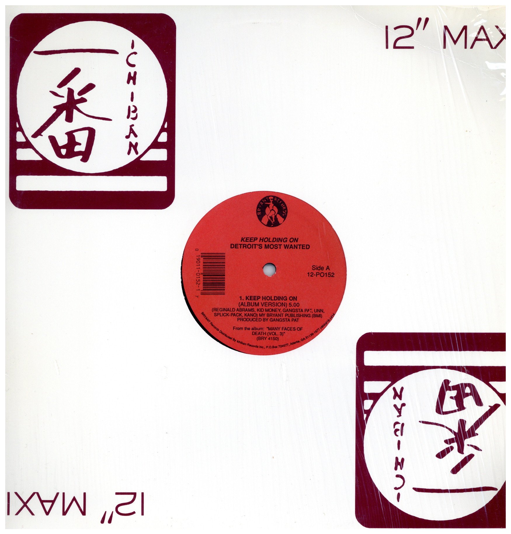 シュリンク付・Ichiban Recordsカンパニースリーブ。US Org。’93リリースの3rdアルバム”Many Faces Of Death Vol. III”からのシングルカット。両面ともGangsta Pat製作による名曲で、Isley Brothers”Groove With You”を使ったメロウチューンに乗り、Simply Red”Holding Back The Years”を唄いなおした女性ボーカルのフックもキャッチーな”Keep Holding On”、Rick James”Mary Jane”を使ったこれまたキャッチーな”Legalize It”をカップリング。