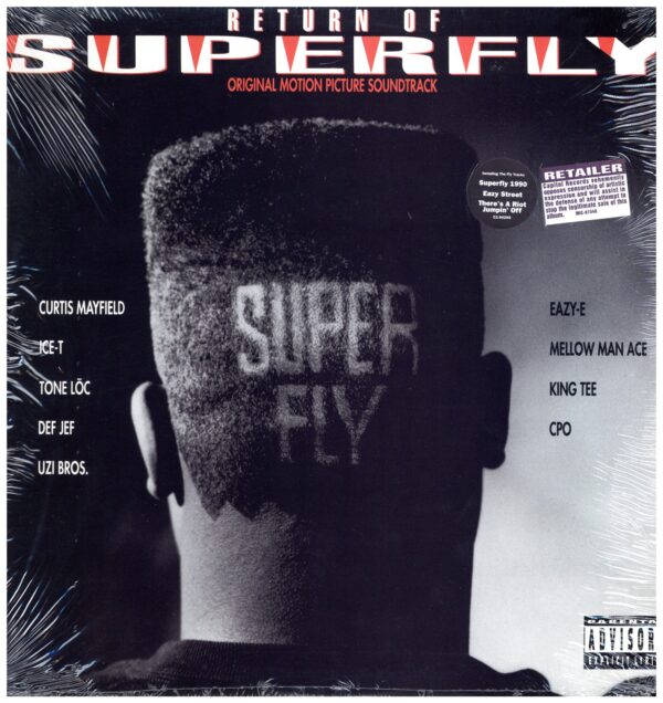 シュリンク付・ジャケステッカー有。ブラックムービーの名作「Super Fly」の続編となる’90公開の映画「Return of Superfly」のサントラアルバム。Ice-Tを迎え90年代仕様で製作されたテーマ曲”Superfly 1990″、アルバムのラストを〆るソウルフルなスロウチューン”For The Love Of You”等、オリジナル同様Curtis Mayfieldが参加しており新作5曲を提供しています。他もMelvin Bliss”Synthetic Substitution”ネタのEazy-E”Eazy Street”、Cheryl Lynn”Got To Be Real”ネタのDef Jef”On The Real Tip”、Pleasure”Bouncy Lady”ネタのKing Tee”Take You Home”等、Old Shoolライクな名曲をコンパイルした全12曲を収録。