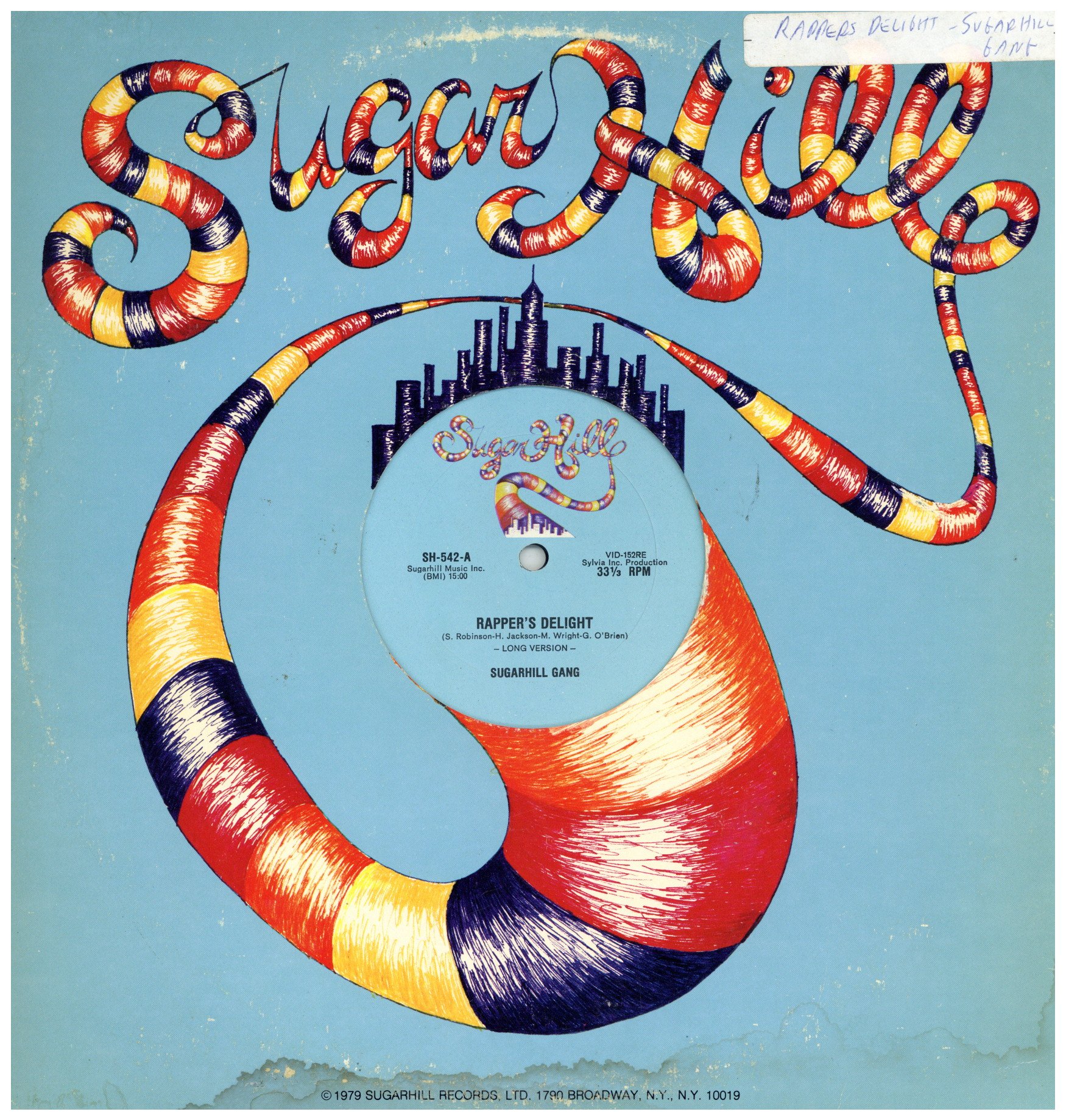 Sugarhillカンパニースリーブ(染み・傷み有)。スリ傷有るがプレイOK。’79にリリースされた記念すべきデビューシングル。Chic”Good Times”をまんま使ったHip Hopの記念碑的作品!この曲から歴史ははじまりました!Old Schoolのコレクターなら絶対買いでしょう!