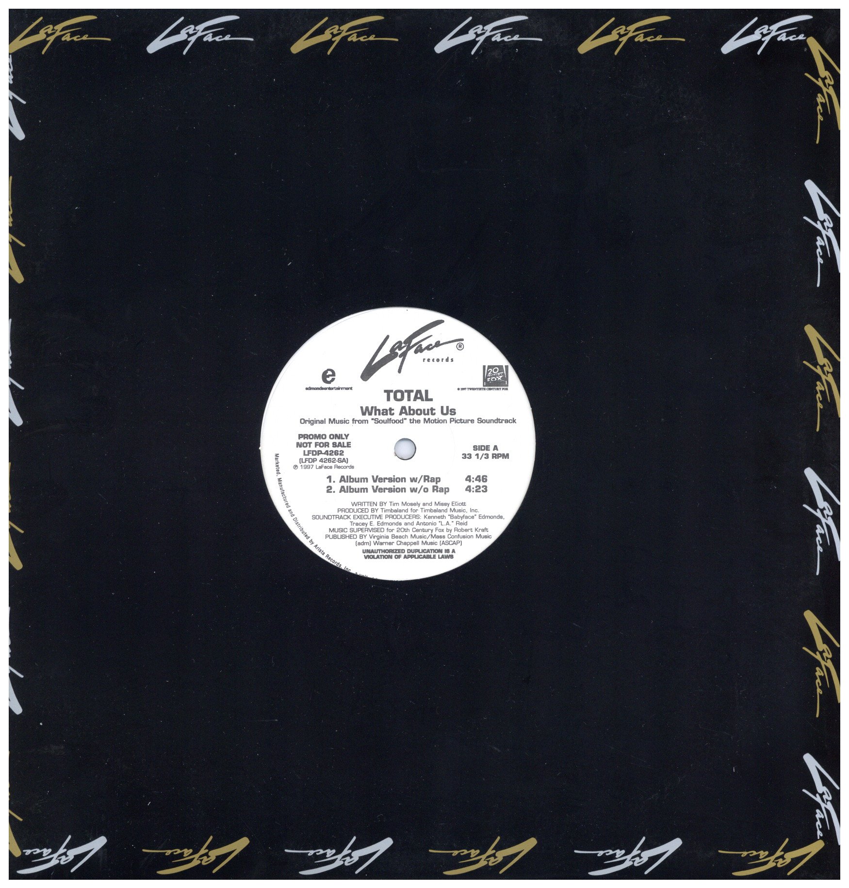 未使用盤・LaFace Recordsレーベルジャケット。US Promo Org。Biggyをfeatした”Can’t You See”でBad Boyから衝撃的なデビューを飾った彼女達が映画「Soul Food」のサントラに提供したシングル。Timbalandが製作・参加し、Missy Elliottもライティングとコーラスで参加した人気のフロアチューン。US正規未収録のBeat Boxテイクを収録。