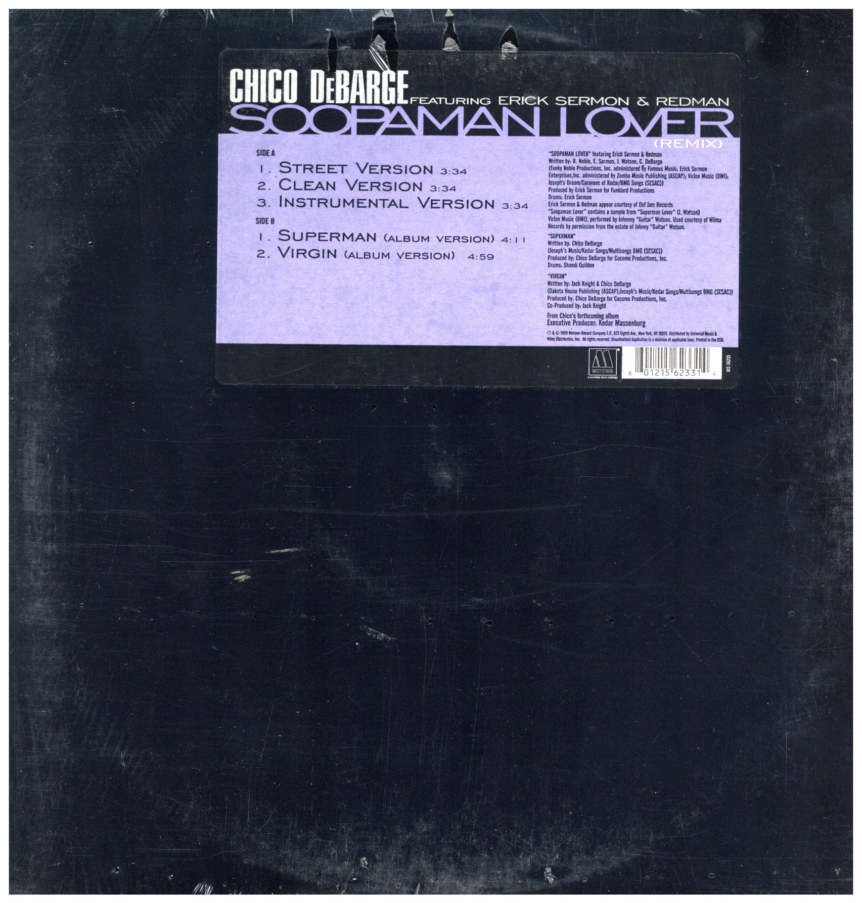 ジャケステッカー・シールド未開封ですが、シュリンク左端ほぼすべて裂け有。デバージ・ファミリーのJonathan Arthur Debargeこと、Chico DeBargeが’97にリリースした3枚目のソロ・アルバム”Long Time No See”からのシングルカット。Erick Sermonを製作に迎えてJohnny Guitar Watson”Superman Love”ネタを使い、それならこの人で間違いないRedmanを迎えた人気チューン。