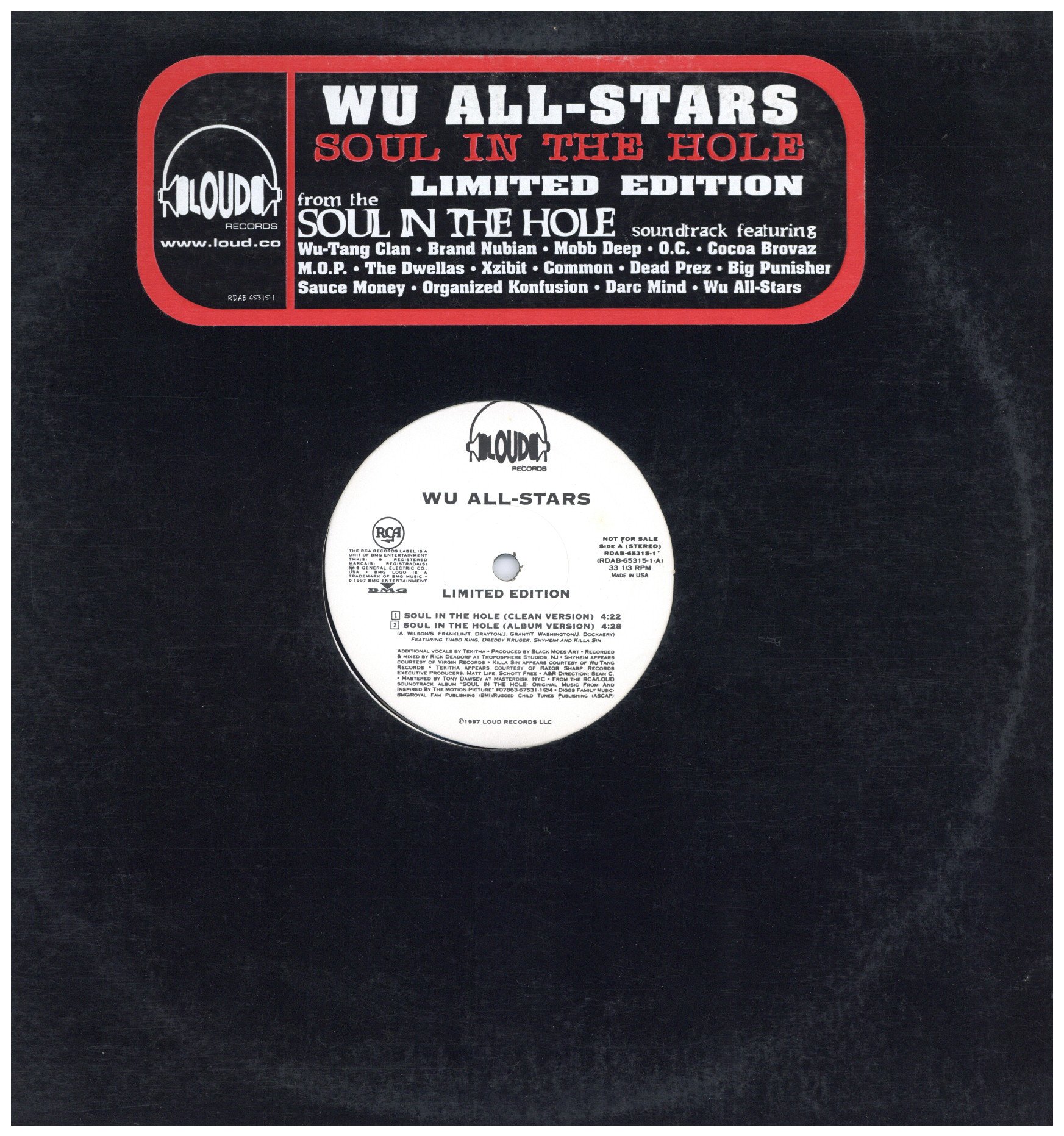 ジャケステッカー有。’97リリース作初期プレスされたLimited Edition。90年代、数多くのHip Hopレーベルからリリースしたブラック・ムービーのサントラですが、コレも傑作に数えられるLoudからリリースされた”Soul In The Hole”からのシングル・カット。Wu Allstarsということで、一派のDreddy Kruger、Killa Sin、Shyheim、Timbo King、Tekithaが参加しています!! Black Moes-Art手掛けるCreative Source極上のソウルネタ”Wild Flower”使いが光るメロウオケに乗せて、マイクリレーを交わす傑作チューン。